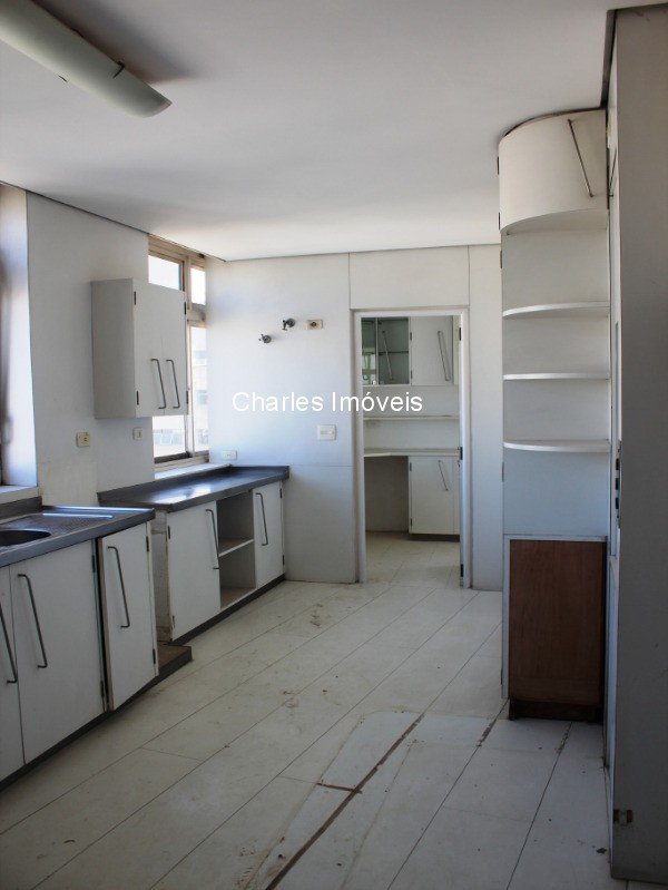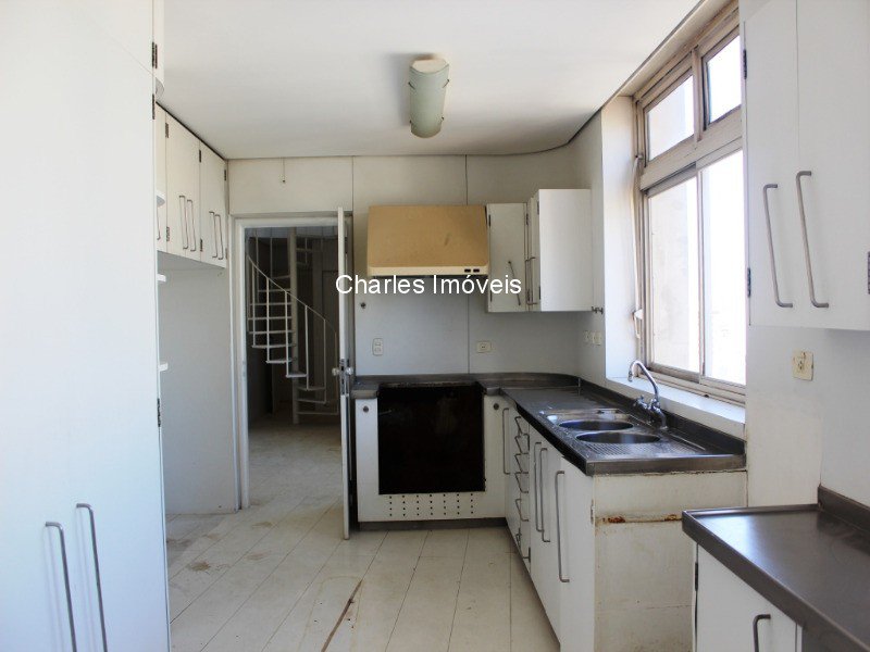 Cozinha ampla com duas pias, armários embutidos e espaço para fogão, 2 geladeiras, micro-ondas, forno elétrico e máquina de lavar-louças; além de ter elevador de comidas/pratos, que conecta com o bar do 19º andar);