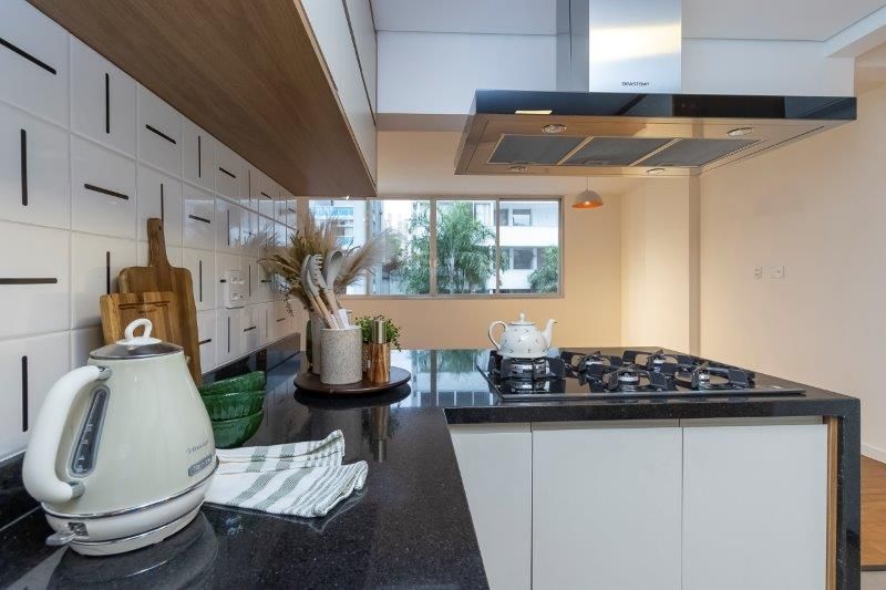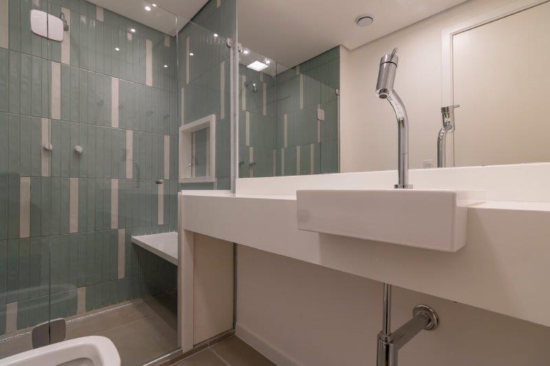 A reforma, como sempre, foi feita de A a Z, com a troca de toda a infraestrutura (elétrica, hidráulica e ar condicionado), e com a escolha a dedo dos acabamentos usados.