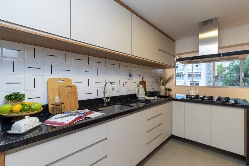 Apartamento com 129,50 m² de área útil, 03 Dormitórios, sendo 1 suíte, 01 Banheiro social, Lavabo, Sala integrada com cozinha, Despensa, Área de serviço, Banheiro de serviço e 01 vaga de Garagem determinada.