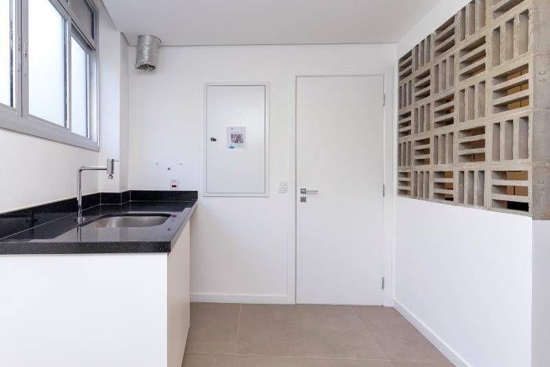 O apartamento é entregue com acabamentos de revestimentos cerâmicos, louças, metais e outros materiais. O imóvel será entregue sem cortinas ou itens.
