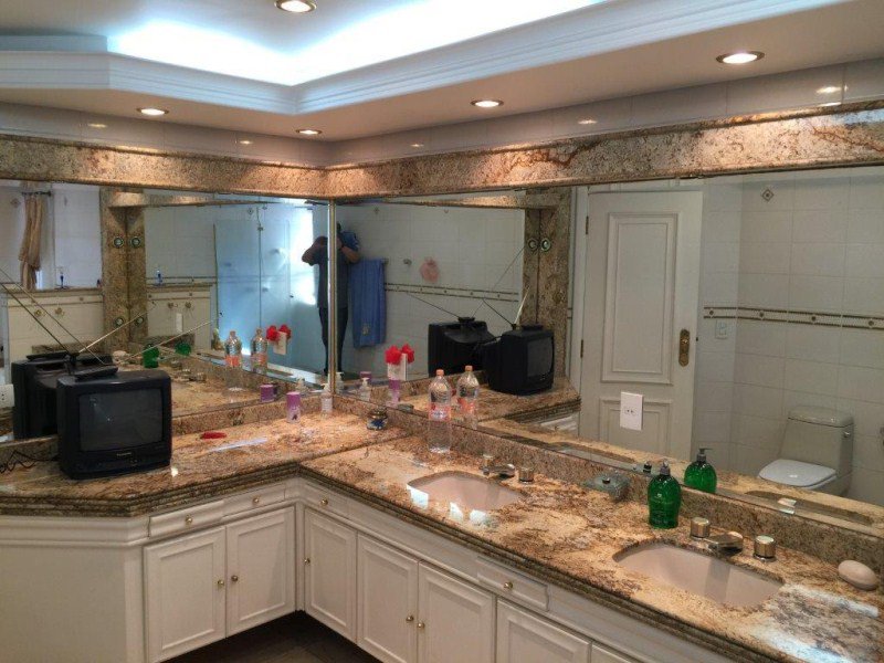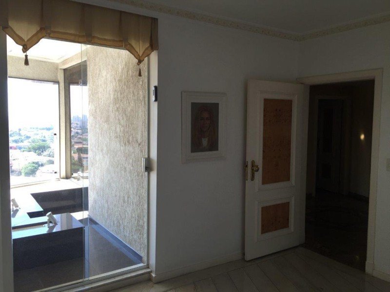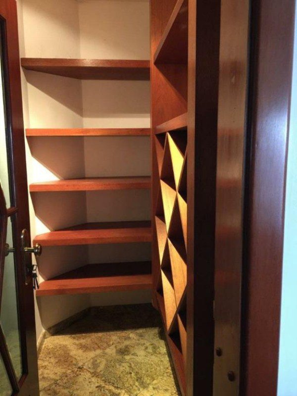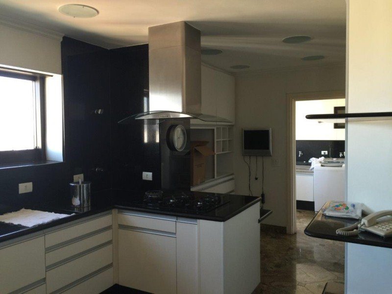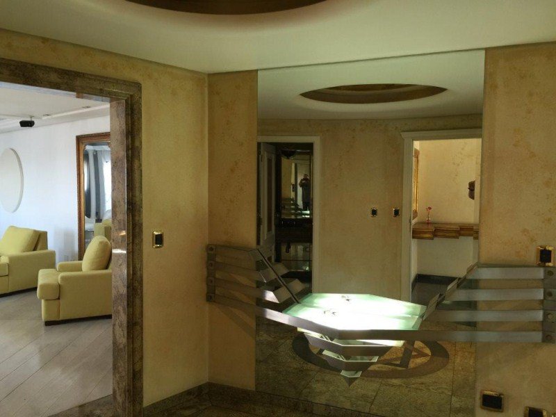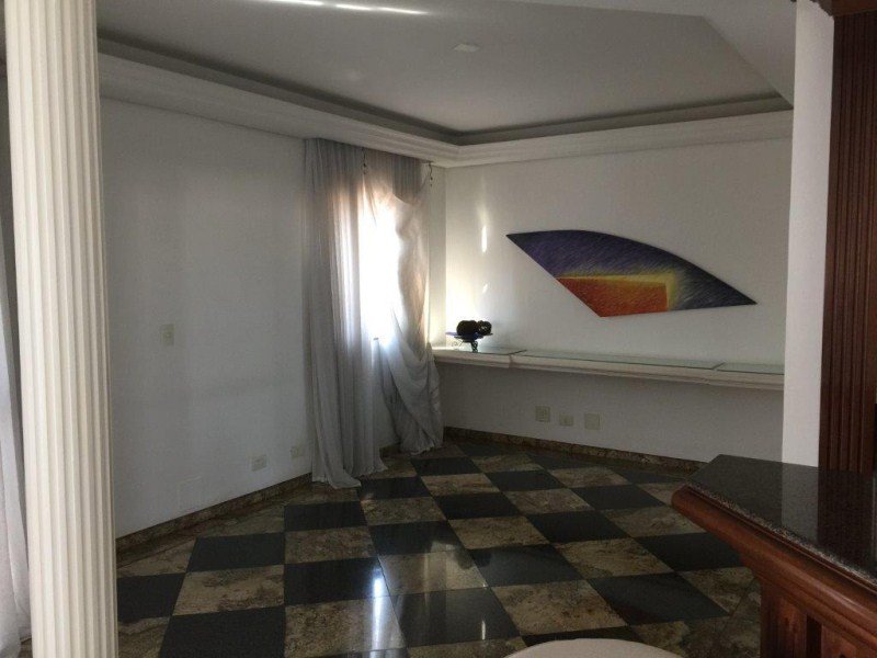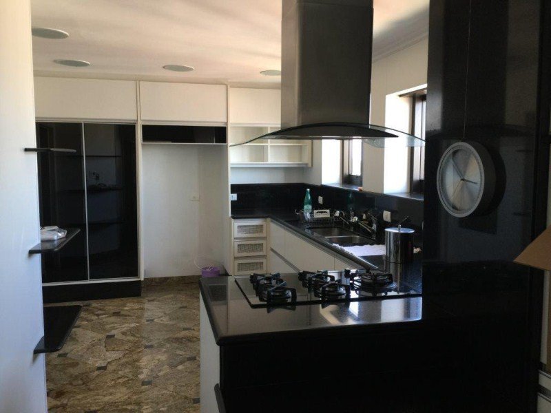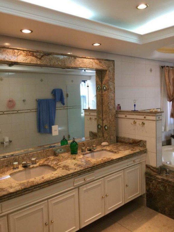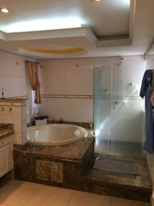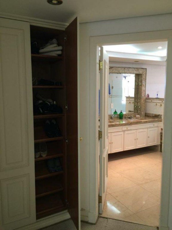 Hall privativo com 2 elevadores sociais, sendo 1 panorâmico; Jardim de inverno, Ampla SALA para vários ambientes com Varandas e Lareira; o escritório e o home theater com piso de tábuas largas de madeira maciça; 4 amplos e arejados dormitórios (sendo 3 suítes banheiros), todas com Closet, Ar-condicionado e armários de madeira maciça (a Suíte Master possui hidromassagem); Lavabo; Cozinha com armários, gabinete e gaveteiros; 2 quartos para empregadas com quarto de TV e lavanderia + sala de motoristas; 5 vagas sendo 1 fechada.