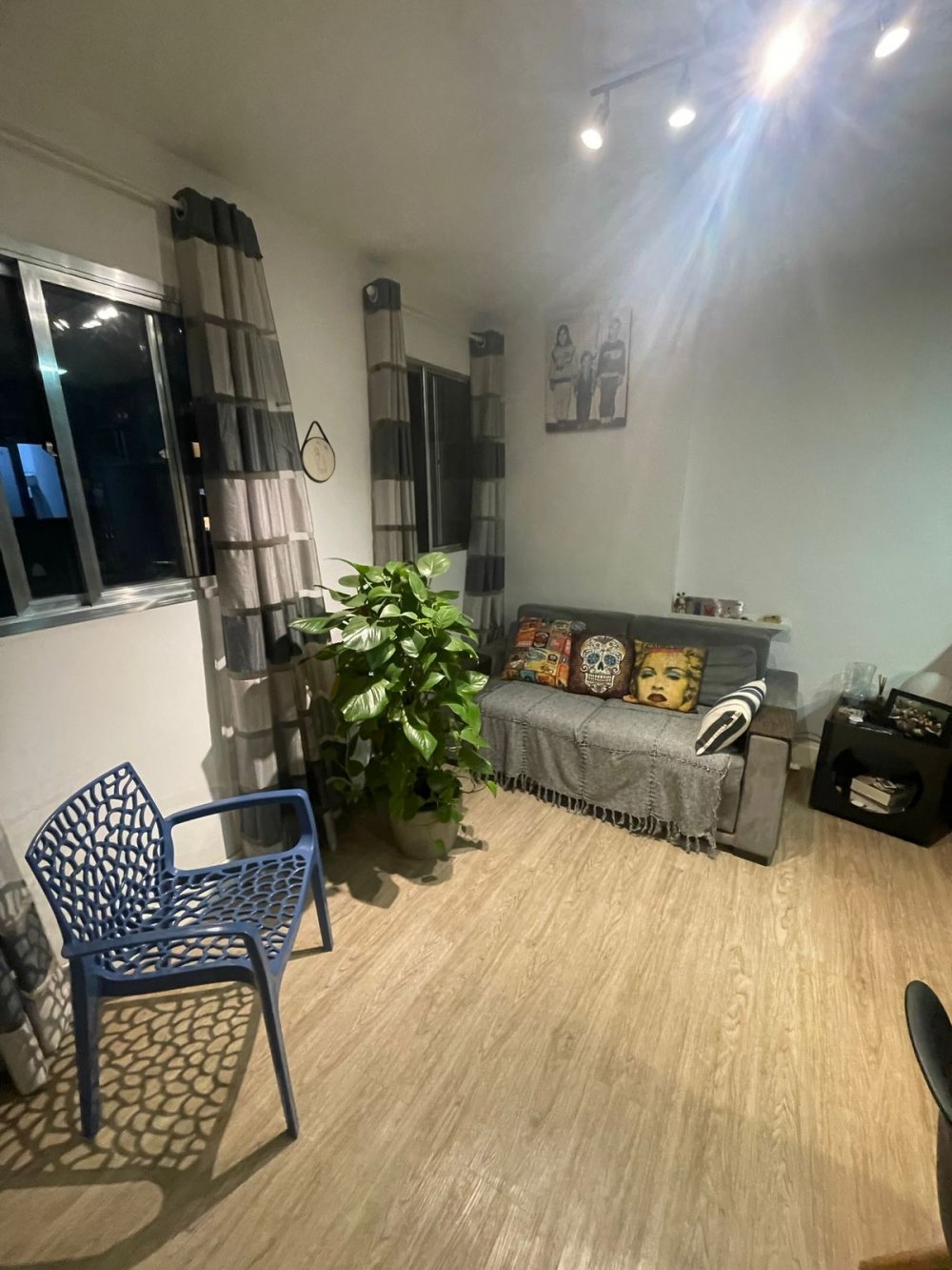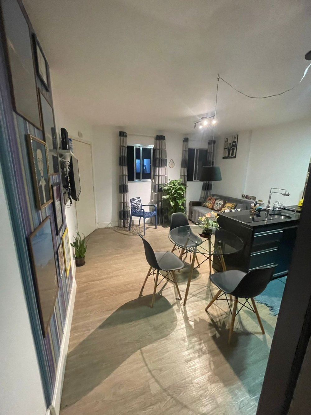 Apartamento todo reformado à venda com 44m², dormitório, sala, cozinha aberta, banheiro e área de serviço.